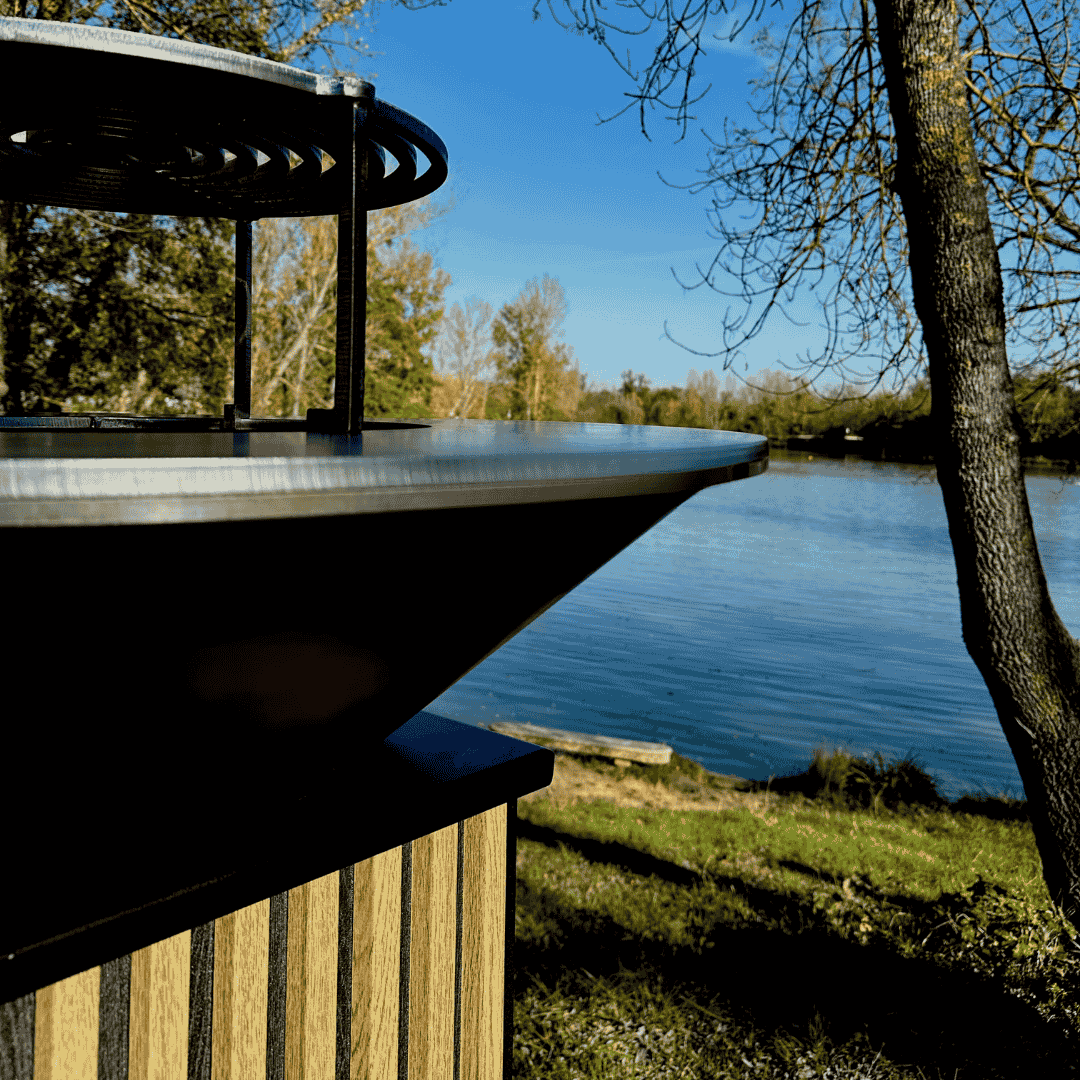 Avec ses dimensions compactes (hauteur 1000 mm, plaque de 850 mm de diamètre), Kyoto s’adapte à tous les espaces extérieurs. Sa structure stable et robuste (socle de 425 mm x 425 mm) garantit une utilisation en toute sécurité. De plus, son design effet bois ajoute une touche contemporaine qui s’intègre parfaitement à tout type de décor.